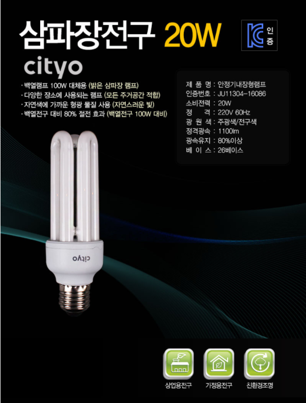 20W = 백열전구 100W 밝기