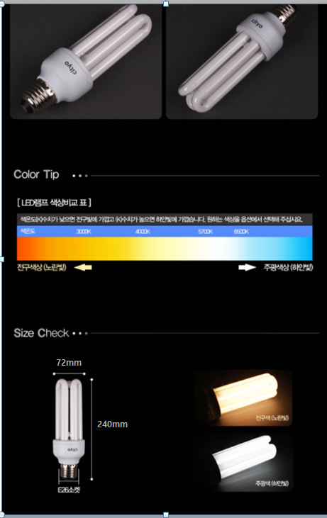주광색 형광등빛 = 시원하고 깨끗한 느낌